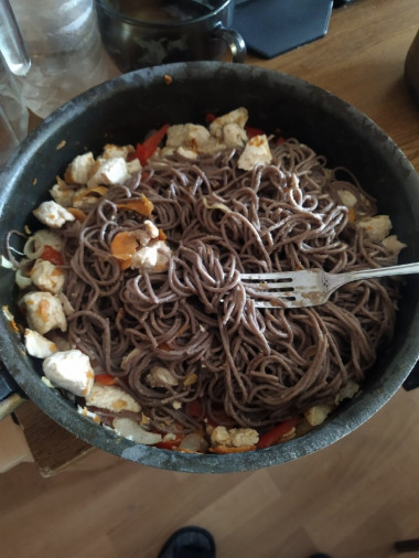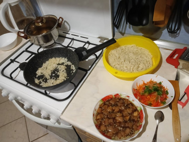 Готовлю первый раз в общаге, и на удивление вышло очень неплохо, лапшу взял другую, получилось вкусно.