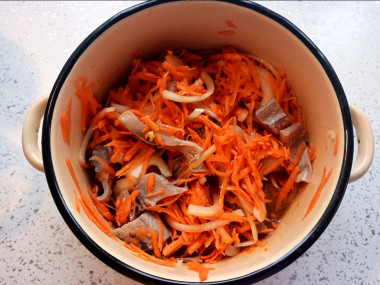 Морковь помойте, очистите и натрите на крупной терке или на терке для корейской моркови.