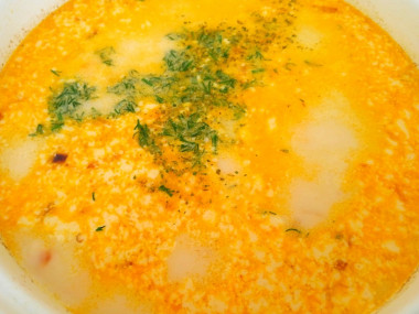 Суп сварила на курином бедре (всегда снимаю кожу перед варкой). Сыр у меня мягкий, поэтому его я просто ложкой добавила в суп. Во время варки добавила сушёную зелень и любимые специи, а при подаче посыпала суп свежей зеленью. Получается лёгкий, быстрый, бюджетный супчик, который радует своим вкусом.