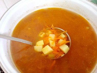 Важно! Независимо от того, указано количество воды для супа в рецепте или нет, лучше всего ориентироваться на собственные предпочтения (густой или более жидкий суп вы любите), а также на размер своей кастрюли и продукты, взятые для приготовления. Не забывайте, что у автора свой взгляд на количество мяса, картофеля, крупы и других ингредиентов в супе, который может не совпасть с вашим. На практике это означает, что если вы готовите в первый раз, не стоит варить сразу целую кастрюлю. Сделайте суп для дегустации - на одного-двух человек. Для этого уменьшите количество всех ингредиентов по рецепту до 1-2 порций, а количество воды возьмите из расчёта: от одного стакана на порцию - если суп планируется очень густой, до 1,5-2 стаканов - если более жидкий. Не забудьте учесть, что часть жидкости в процессе приготовления выкипит. Продегустировав небольшую порцию супа, вы сможете отрегулировать как количество жидкости, так и пропорции ингредиентов по вашему вкусу. В дальнейшем, как и большинство опытных хозяек, вы сможете наливать воду для супа и закладывать ингредиенты “на глазок”.