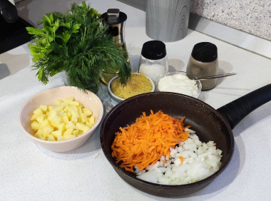 Лук и морковь очистите, ополосните и измельчите. Лук мелко нарежьте, а морковь натрите на терке. Обжарьте измельченные овощи 3-4 минуты на небольшом огне. Затем переложите готовую зажарку в суп. О том, как выбрать сковороду и идеальное для жарки масло читайте в отдельных статьях, ссылки под шагами.