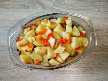 7. Закрыть крышкой или фольгой и выпекать блюдо в духовке при 140 градусах 90 минут.
