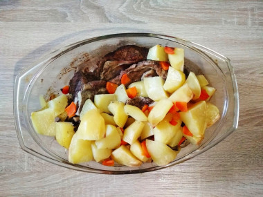 5. Мясо вместе с выделившимся соком переложить в форму для запекания.