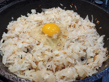 Приготовила капусту с яйцом жареную на сковороде. Обжарила на подсолнечном масле мелко нарезанный лук, капусту нашинковала, слегка перетекла руками с солью, добавила на сковороду с луком, жарила, помешивая до готовности, по вкусу добавила ещё немного соли и черный перец Яйцо слегка взбила вилкой до однородности, добавила к капусте, перемешала, обжарила всё вместе примерно 1-2 минуты. Получилось быстро, вкусно, достаточно сытно. Подавала с зеленью, как самостоятельное блюдо. Думаю и как начинка для пирожков будет очень вкусно. Спасибо за рецепт, Наталья Цибульская!