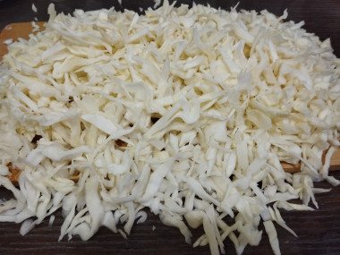 Капусту помойте, обсушите, снимите 2-3 верхних листа, - они как правило самые грязные. Нарежьте капусту любым удобным для вас способом. Я порубила ее тонкой соломкой.