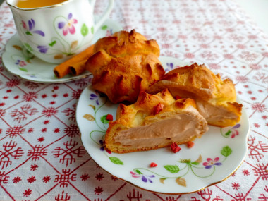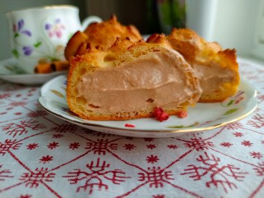 На десерт решила сделать заварное тесто для профитролей. Профитроли получились замечательные, с глянцевой корочкой! Раньше я готовила профитроли на воде, а на молоке, по моему мнению, профитроли получились вот с этой аппетитной глянцевой корочкой