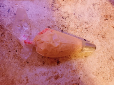 Готовое заварное тесто для профитроль должно плавно стекать с лопатки и образовывать на ней язычок (на фото показала какой). Далее я воспользовалась кондитерской насадкой "закрытая звезда", и отсадила на противень профитрольки))