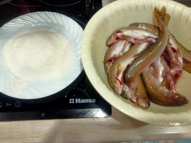 5. Каждую тушку тщательно запанируйте в муке и выложите на раскаленную сковороду.