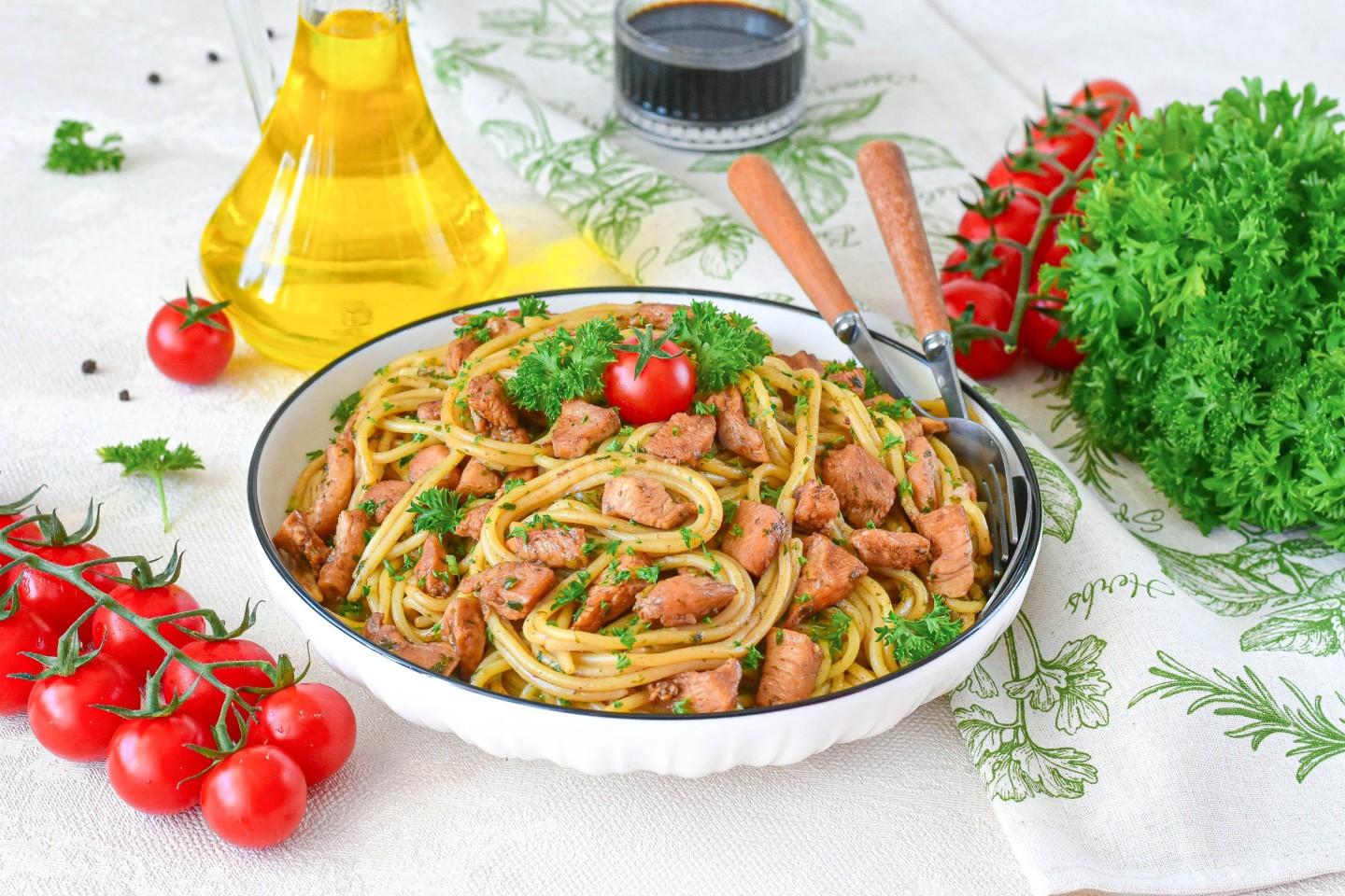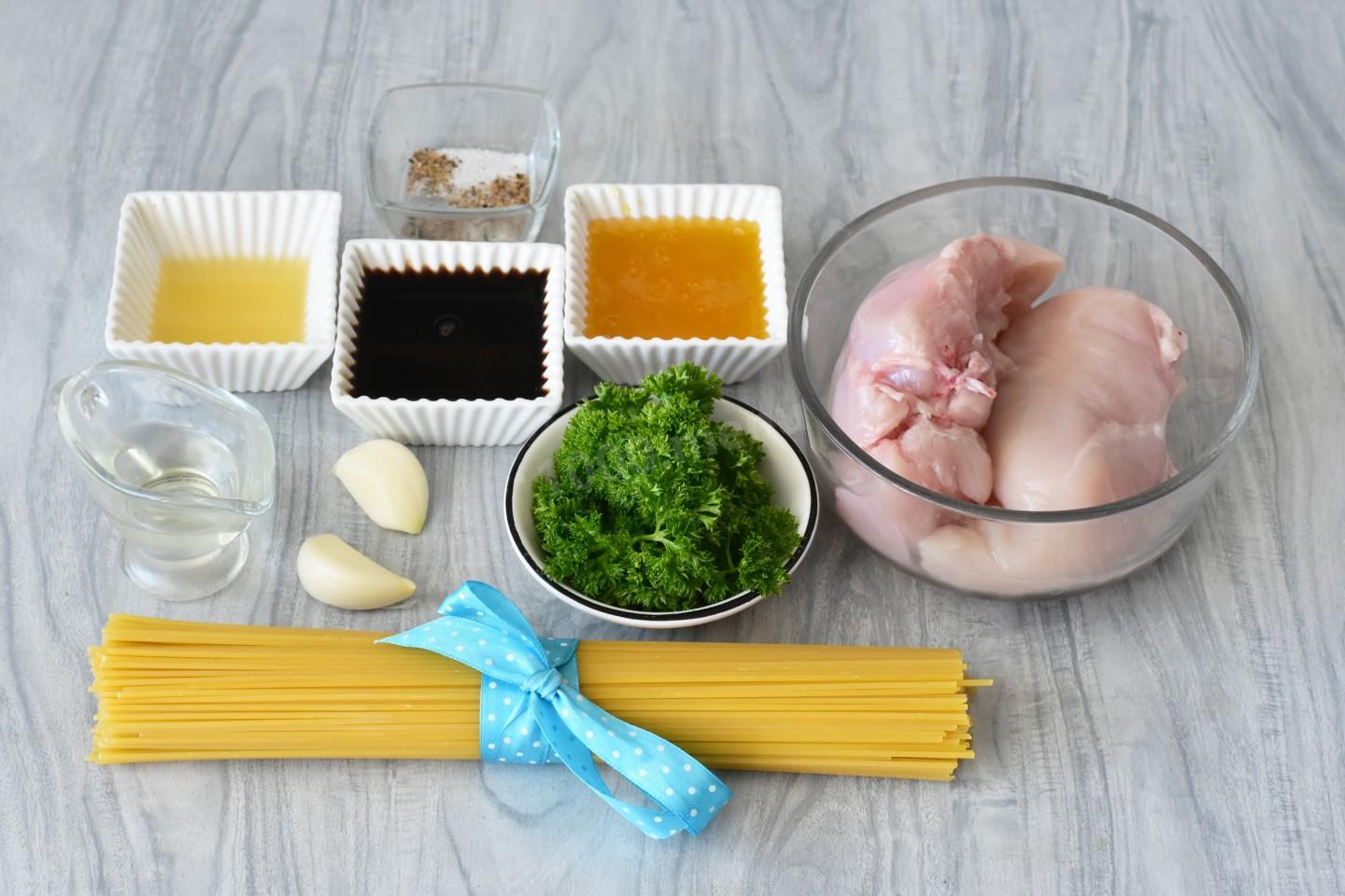 Как сделать макароны с соевым соусом и курицей? Подготовьте необходимые ингредиенты. Для пасты подойдут любые макароны: длинные (спагетти, феттуччини, лингвини) или средние (пенне, фарфалле, фузили, и др.). У меня спагетти. Подробнее о тонкостях выбора макарон читайте в отдельной статье, ссылка в конце рецепта. Если используете замороженную курицу - предварительно разморозьте ее. О тонкостях правильной разморозки читайте в статье по ссылке в конце рецепта.