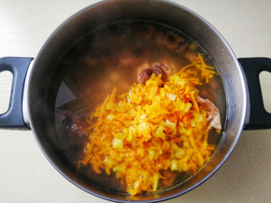 Добавьте обжаренные овощи в кастрюлю.