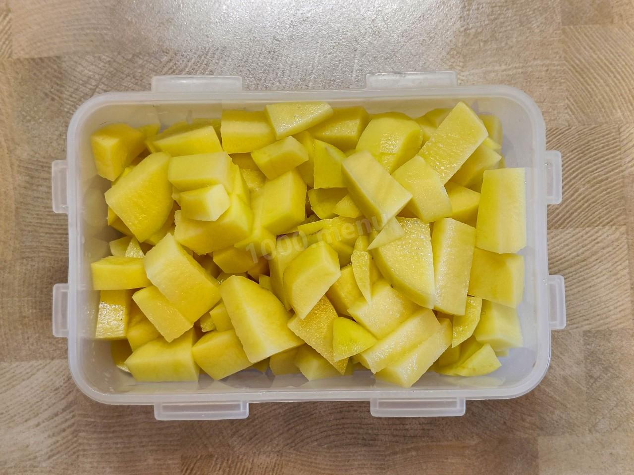 Картофель нарежьте кубиками.
