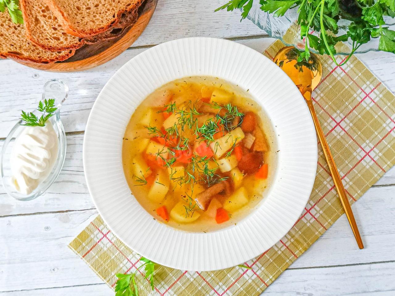 Готовый суп можно подавать со сметаной и свежей зеленью. Приятного аппетита!