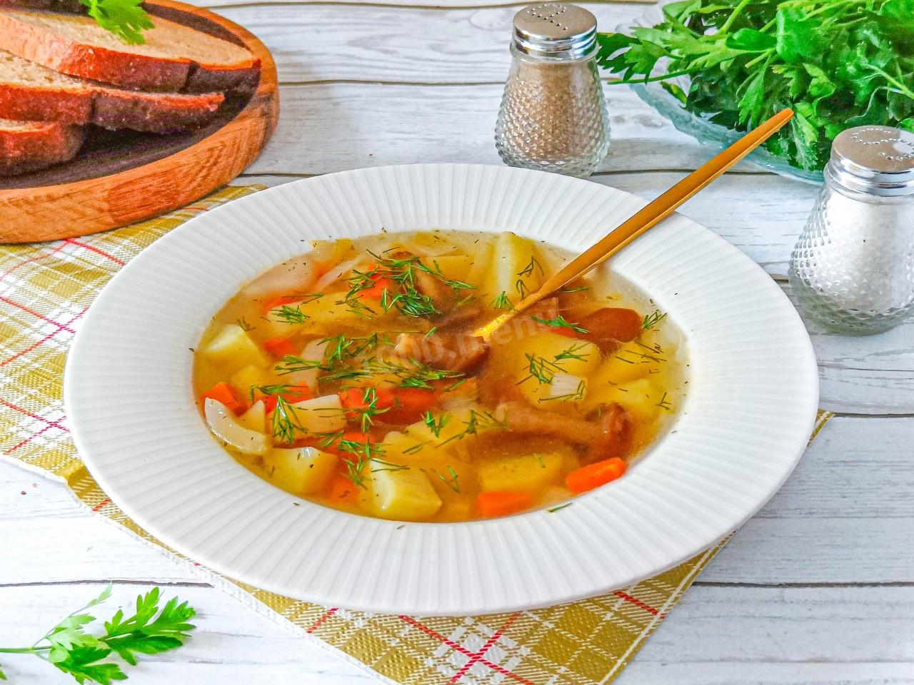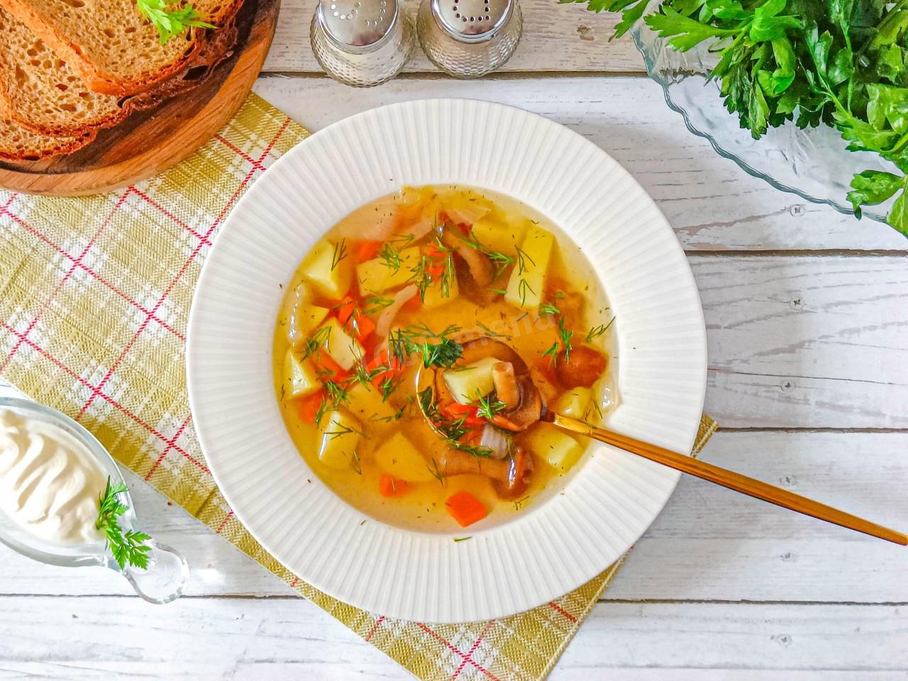 Опята хорошо проварились, вышли мягкие, но хрустящие, придали супу сладковатый привкус, аромат и насыщенный вкус. Очень вкусно получилось!
