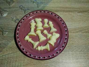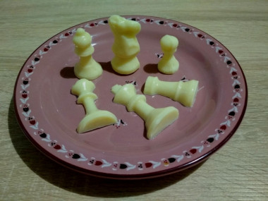 Очень люблю белый шоколад, но готовила его сама впервые. Для пробы сначала приготовила фигурки из половины указанных в рецепте ингредиентов, к тому же моя форма для шоколада не вмещала целую порцию. Процедура приготовления незатейливая, в этом и ценность рецепта - он быстрый и простой. На вкус белый шоколад домашний отличается от магазинного. Чувствуется некоторая сахаристость, но хрустит приятно, как настоящий! Думаю, что в шоколадную массу можно добавлять жирорастворимые красители и получать как разноцветные шоколадки, так и фигурки чистого белого цвета. Моей же целью было сделать украшения для шахматного торта, где желтоватый оттенок имеет также и ванильный бисквит, входящий в его состав. Спасибо за рецепт!