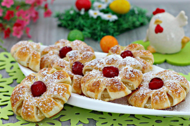 Помимо покупного, вы можете использовать и тесто собственного приготовления. Рецепт домашнего слоеного теста для этой выпечки вы можете выбрать в этом каталоге.