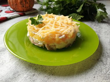 Извлеките салат из формы и немного охладите в холодильнике перед подачей.