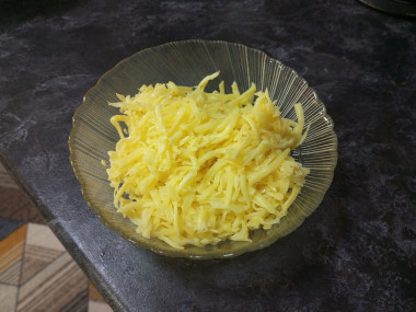 Сыр натрите на средней терке. Сыр выбирайте хорошего качества, подойдет как твердый, так и других сортов. Главное, чтобы он был без заменителей молочных жиров, вкусный и хорошо плавился. Как заменять разные виды сыров читайте в статье в конце рецепта.