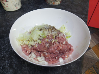 Фарш у меня был уже готовый, поэтому лук я натёрла на тёрке, правда крупной по привычке, тоже хорошо получилось)