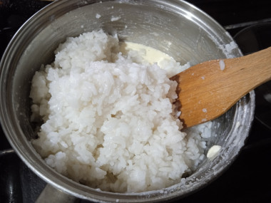 В горячую кастрюлю от риса выложите кусочек сливочного масла. Он сразу начнет таять.