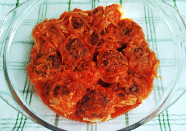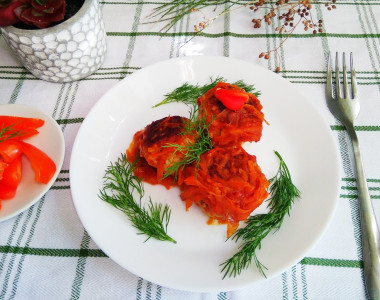 Как сделать тефтели в духовке в томатном соусе? Подготовьте продукты. Для этого блюда можно брать любой фарш: свиной, говяжий, куриный, индюшиный, кроличий, смешанный. Если вы используете замороженный фарш, заранее разморозьте его, используя для этого нижнюю полку холодильника. Помойте щеточкой морковь, очистите ее. Снимите с репчатого лука шелуху.