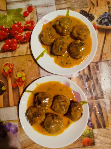 Были размышления о том что сделать из фарша, нашёлся данный рецепт и заведомо понравился, как показал результат - не ошибся. Получилось очень вкусно, но видимо немного переборщил с мукой или было маловато воды. Тефтели поедались с удовольствием и салатиком из овощей.