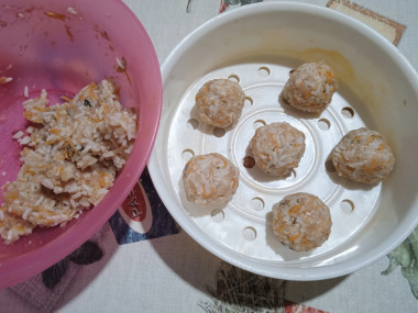 Сделала тефтели на пару в мультиварке по этому рецепту. Использовала домашний фарш из свинины и курицы, который приготовила самостоятельно с добавлением лука и чеснока, а также молотого кориандра. Отварила рис до полуготовности. Морковку мелко потерла, укроп использовала измельчённый замороженный. Соединила все ингредиенты и слепила влажными руками небольшие шарики. Оставшийся фарш убрала в морозилку по рекомендации автора. У меня в ёмкость для приготовления на пару поместилось 6 тефтелек. Готовила на пару в мультиварке в течение 40 минут. Очень всё просто и совсем не сложно. Тефтельки с морковкой получились сочными, нежными и очень вкусными. Замечательный рецепт! Ребенок сразу половину съел, уж больно ему понравились эти шарики. Подавала тефтельки с тушёной капустой. Прекрасный рецепт! Большое спасибо автору 😊