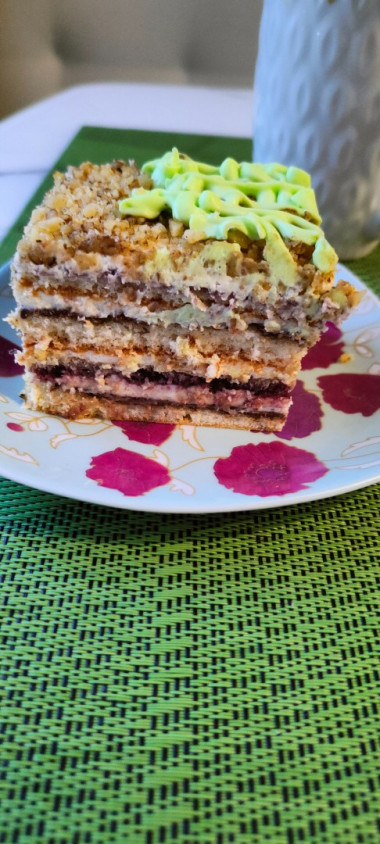Отличный рецепт! Очень вкусный торт получился. Делала с черничный джемом и обсыпала молотыми грецкими орехами