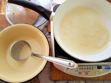 Складывайте готовые блины на плоское блюдо стопкой.