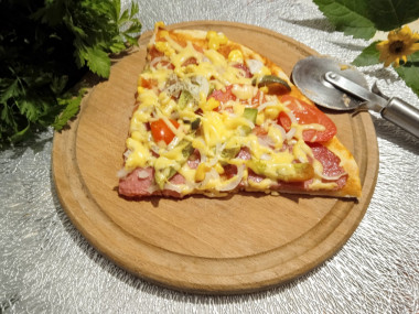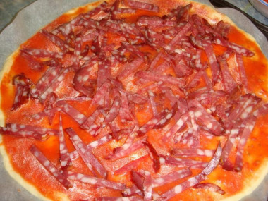 Очень простой рецепт вкусной пиццы с салями и сыром моцарелла! Домашние оценили! Вкусно, сырно, ароматно. Большое спасибо за рецепт!
