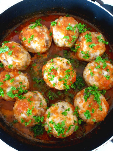 Люблю тефтели!Готовлю часто,соус делаю примерно такой же,только добавляю чуть побольше водички и обязательно немного сахарку.