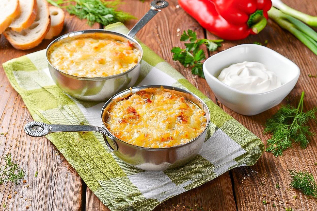 Разложите готовую смесь в кокотницы