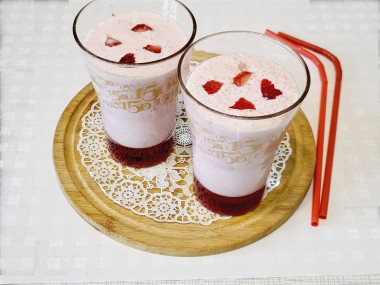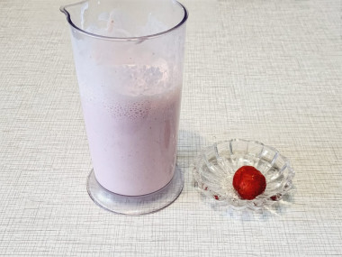 Коктейль получился однородный по текстуре, крупинки творога не ощущаются "от слова совсем"
