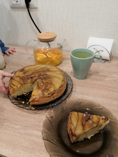 Тесто у пирога пропеклось замечательно, оно пористое, мягкое и вкусное. Груши сохранили форму, не развалились. В целом прекрасное сочетание теста и фруктов. Вкусно и ароматно.