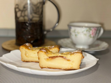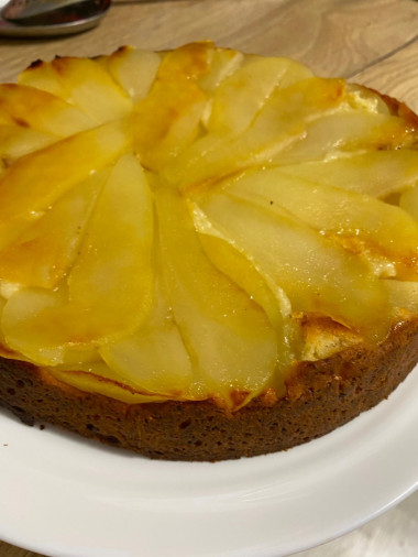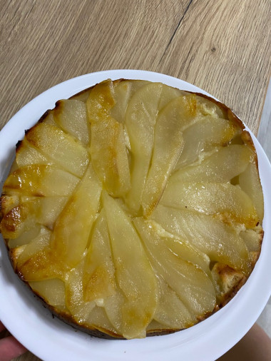 Готовила с творогом . Все клала по рецепту( единственное маслом с сахаром намазала дел перед грушами) . Груши были жесткие, но сладкие .