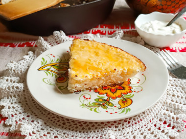 На завтрак испекла творожную запеканку с рисом в духовке. Творог использовала 5-процентный, яйца категории С1, рис круглозерный. Изюм не добавляла, моя дочка не любит его в готовой еде. Готовила запеканку в чугунной форме диаметром 26 см 40 минут.