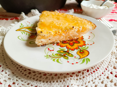 Получилась запеканка очень вкусная. Я часто готовлю творожные запеканки на завтрак, но с рисом получилось особенно сытно. Хороша запеканка и в горячем, и в холодном виде.