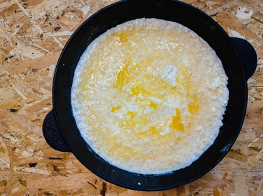 Выложите творожно-рисовую массу в смазанную сливочным маслом форму для запекания и разровняйте. Если форма силиконовая, смазывать ее не обязательно.