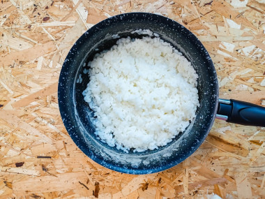 Готовый рис охладите. Также вы можете отварить рис в большом количестве воды (ок. 400 мл) до полуготовности, примерно 10 минут. Во время запекания в духовке рис дойдет до полной готовности.