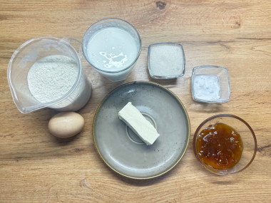 Как приготовить маффины с вареньем на кефире? Подготовьте необходимые ингредиенты. Включите духовку на 180 градусов. Пока готовится тесто, духовка разогреется. Варенье выбирайте густое. Очень жидкое или слишком сладкое варенье может «перевлажнить» тесто.