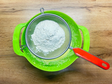 Мука по-разному ведет себя в тесте в зависимости от влажности, клейковины, её может уйти больше или меньше. Советую просеять муку и разделить ее условно на 2 неравные части. В большую часть муки добавить разрыхлитель и соду, перемешать. И постепенно добавлять в тесто. Далее, добавляйте оставшуюся муку, также частями, регулируя консистенцию. Тесто должно получится жидким, чуть гуще чем на оладьи. О муке и её свойствах можно узнать из статьи в конце рецепта.