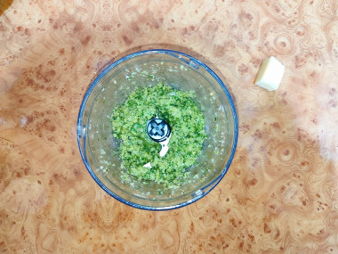 Правда базилика у меня было не достаточно, всего 35 грамм. Ещё бы 15 грамм и песто был бы более зелёным и его аромат более насыщенным. Но это не критично, поскольку очень вкусно.