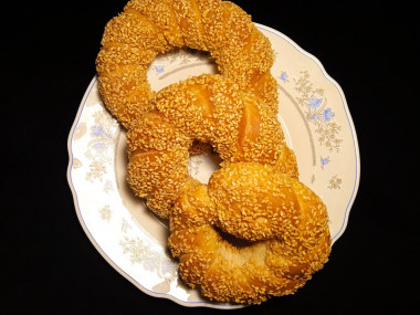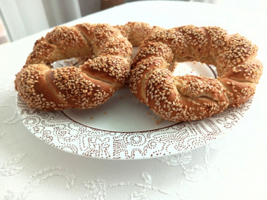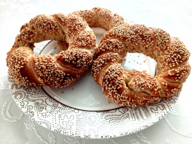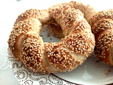 Давно хотела попробовать эти интересные бублики! Честно говоря увидела их в каком-то турецком сериале, тогда они меня и заинтересовали))) Ваш рецепт оказался "кстати". Симиты-очень универсальная выпечка, и на завтрак с кофе, и на обед ,и на ужин просто с молоком! Ну и конечно же, нельзя не сказать про их текстуру и вкус, легкая кунжутная корочка сверху и невесомый и нежный мякиш внутри!!! Автору благодарнасть за рецепт!