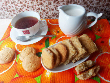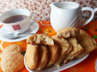Наше печенье выпечка из сметаны и творога готово. Дайте ему остыть. Подавайте печенье к столу с горячим ароматным чаем, кофе или молоком. Приятного аппетита!