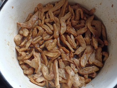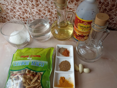 Пока 15 минут отваривается соевое мясо, сделайте маринад: