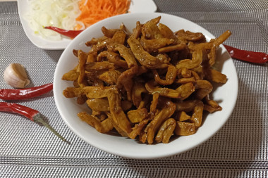 Готовое маринованное соевое мясо годится и в салаты, и как закуска.