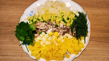 Салат Мимоза с рыбными консервами классический