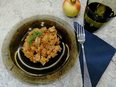 Выбор пал на рецепт плова в сковороде , на вид очень аппетитненького.
