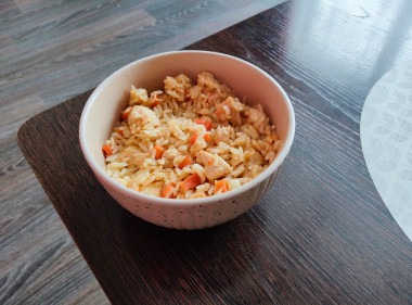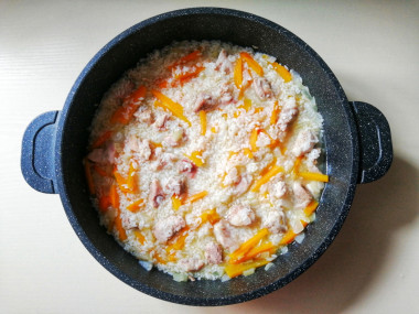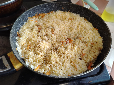 Из рецепта почерпнул, что солить, перчить и добавлять специи нужно до прибавления риса. А так готовил как обычно, просто рецепт очень похож на то, как готовлю плов я. Очень вкусно получилось.
