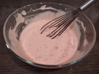 Перемешайте продукты венчиком. Сначала масса будет казаться густой, но затем станет текучей, как тесто на блины.