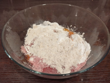 Всыпьте просеянную муку. О муке и её свойствах можно узнать из статьи в конце рецепта.